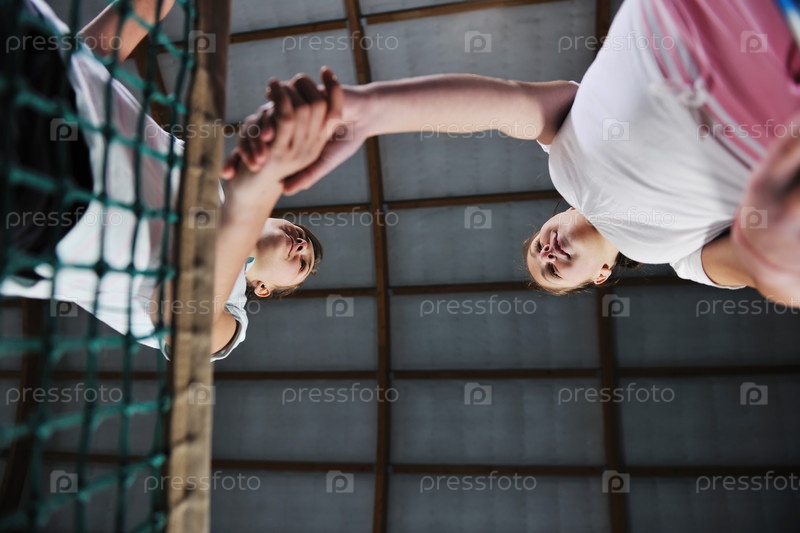 Две девушки играют в теннис