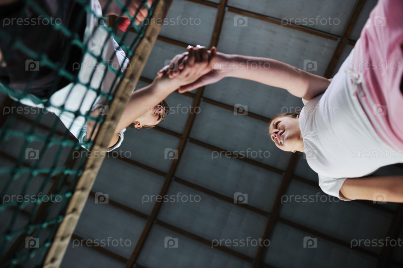 Две девушки играют в теннис