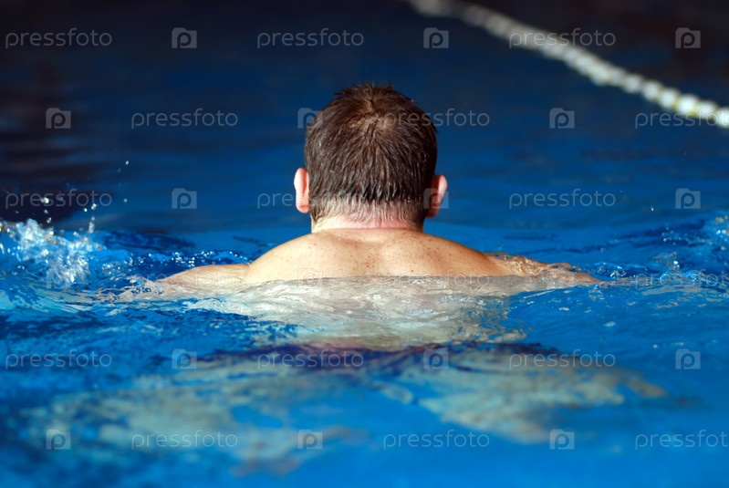 Мужчина плавает в бассейне