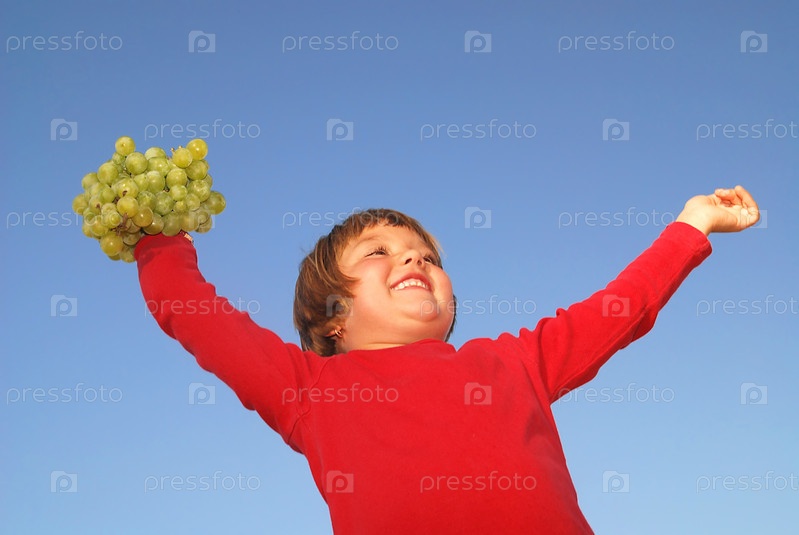 Девочка с виноградом на открытом воздухе