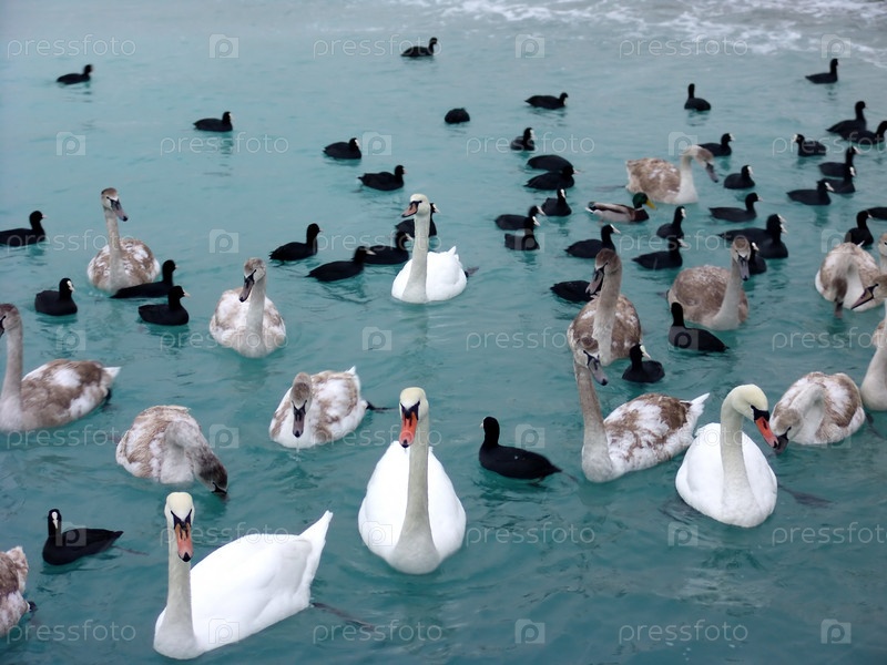 Лебединая стая в пруду