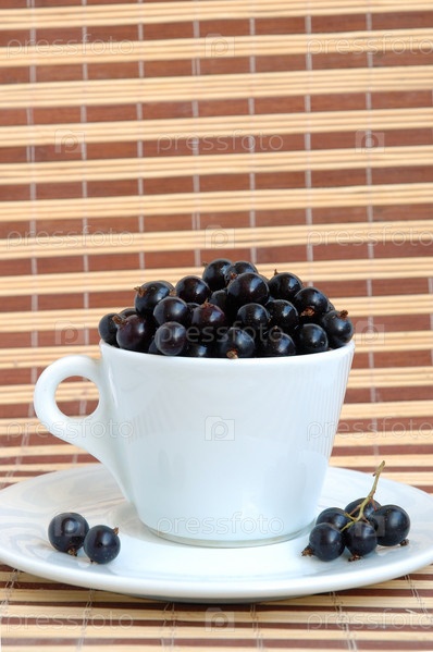 Ягоды черной смородины в белой чашке