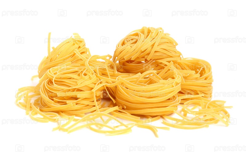 Итальянские макароны тальятелле на белом фоне