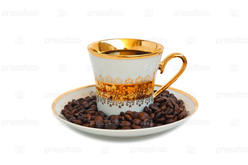 Чашка кофе и зерна