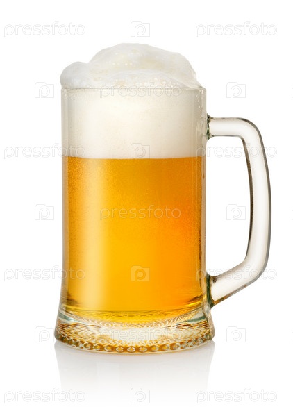 Кружка пива на белом фоне