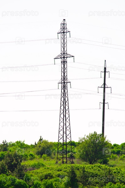 Электрическая подстанция, башни на холме