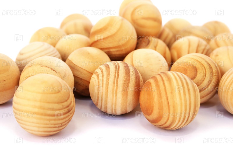Деревянные шарики на белом фоне