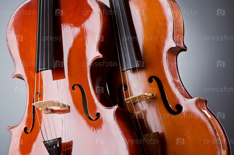 Две виолончели на сером фоне