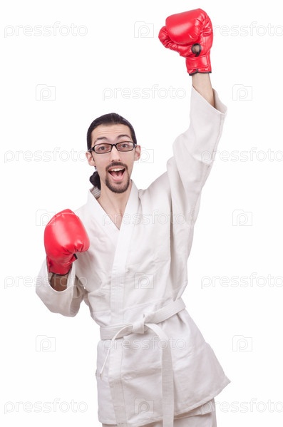 Молодой боксер на белом фоне
