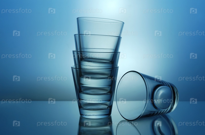 Пустые стаканы для текилы или сока на синем фоне