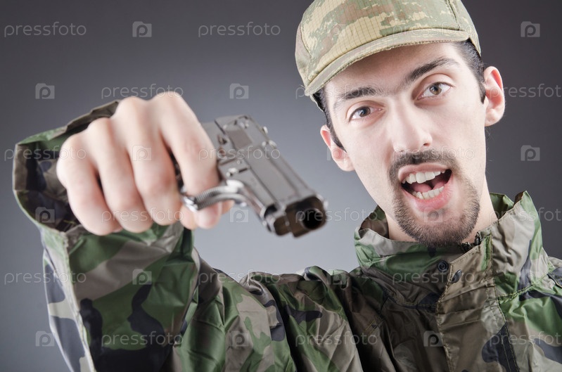 Солдат с пистолетом, студийный портрет