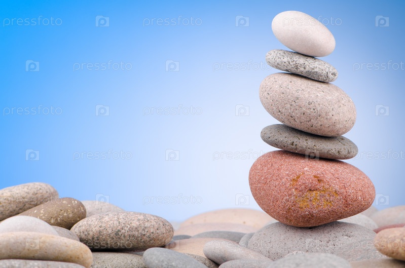 Морская галька на голубом фоне
