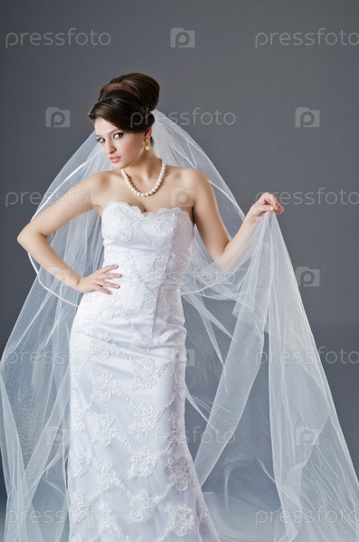 Невеста в свадебном платье в студии