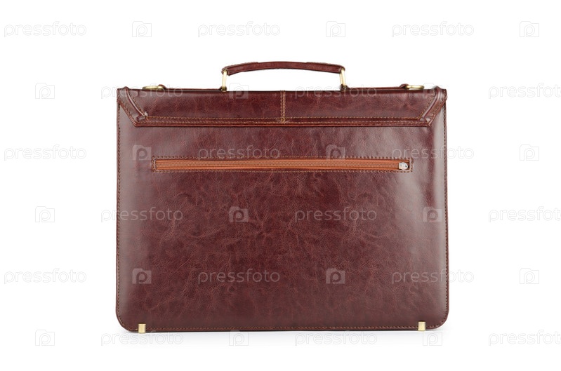 Кожаный портфель на белом фоне