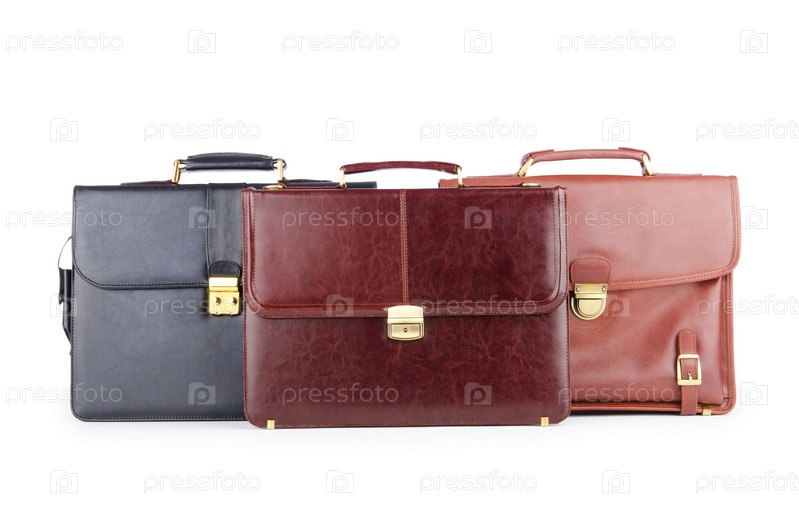 Три кожаных портфеля на белом фоне