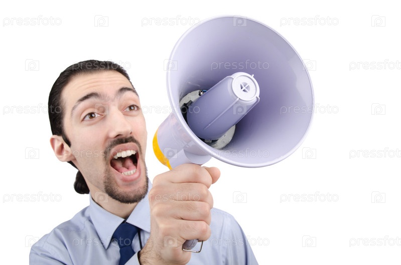 Мужчина кричит в мегафон