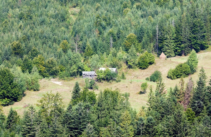 Летний горный пейзаж с лесом. Карпаты, Украина