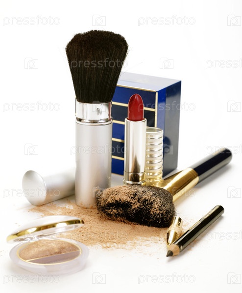 Парфюмерия и косметика, натюрморт на белом фоне