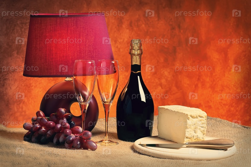 Бокалы, вино и сыр на столе