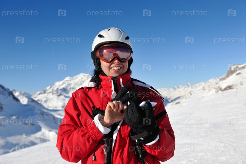 Женщина на горных лыжах