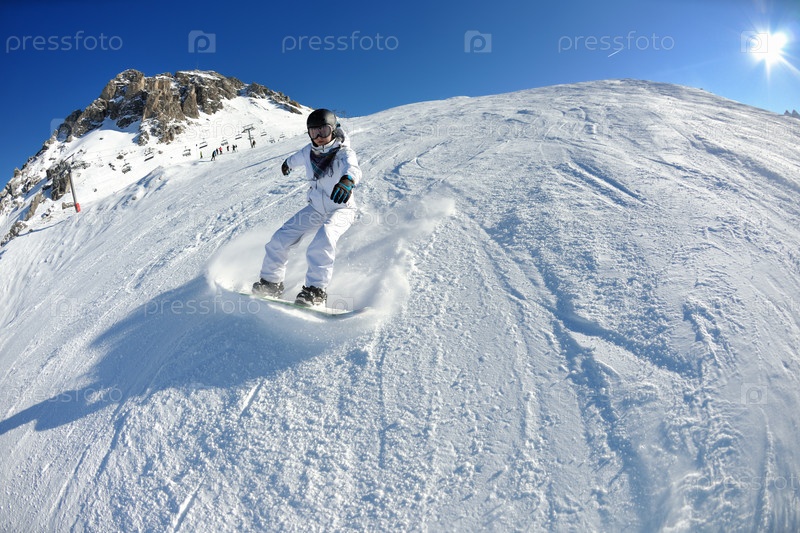 Сноубордистка на горном спуске
