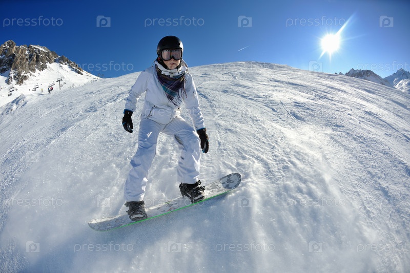 Сноубордистка на горном спуске