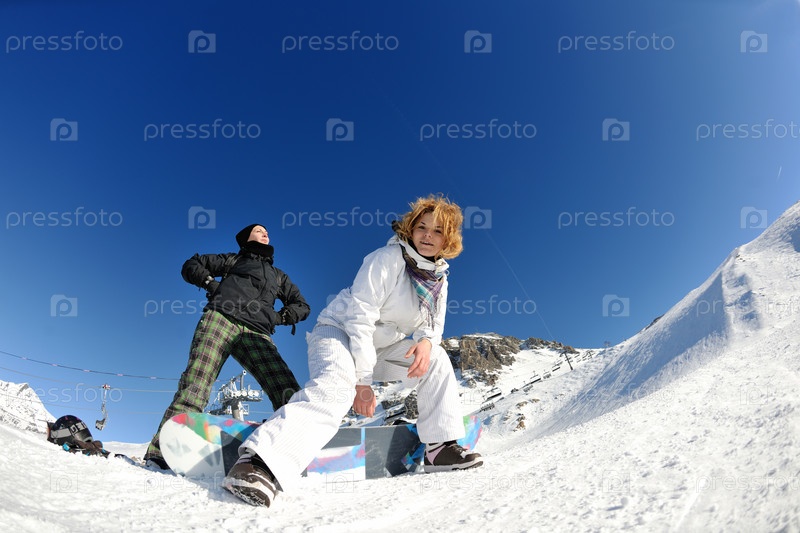 Сноубордистки в горах