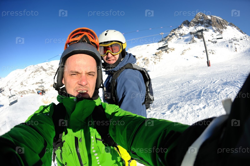 Молодые люди на горнолыжной трассе
