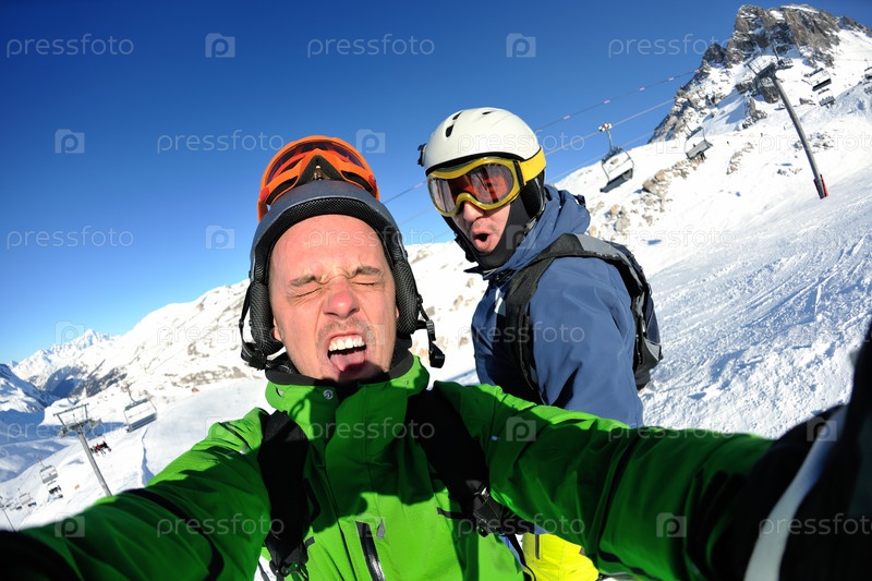 Молодые люди на горнолыжной трассе