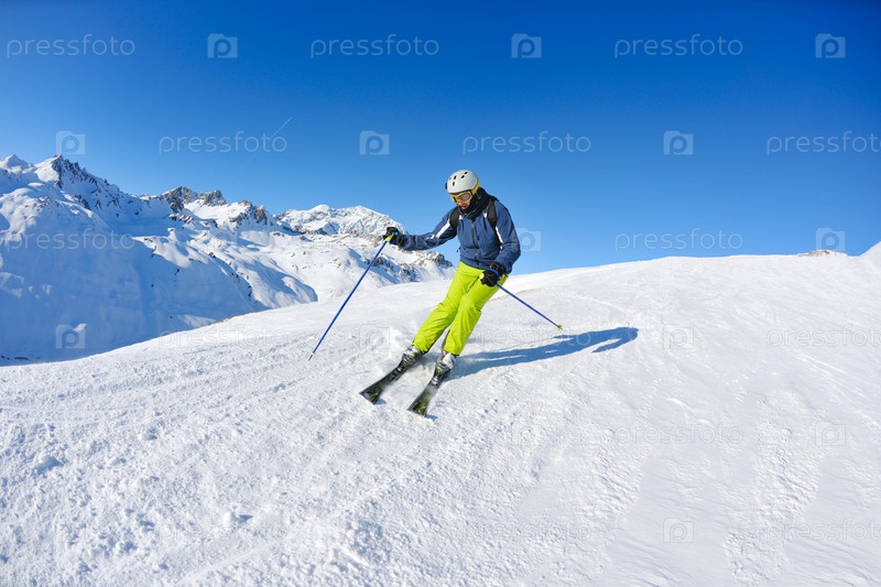 Горнолыжник на склоне горы