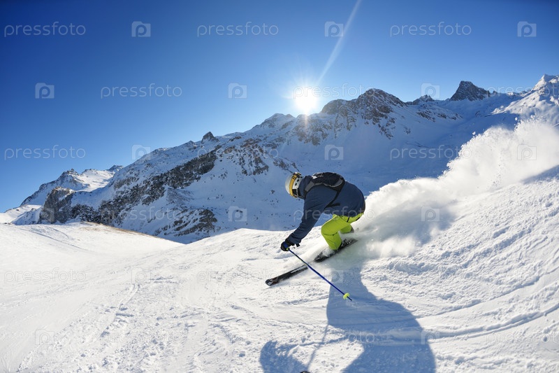 Горнолыжник на склоне горы