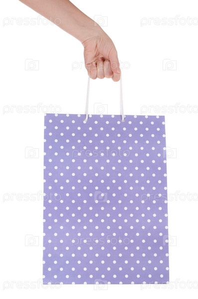 Подарочный пакет в руке на белом фоне