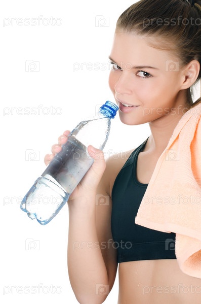 Спортивная девушка с полотенцем и бутылкой воды