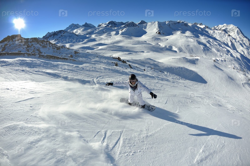 Сноубордистка на склоне горы