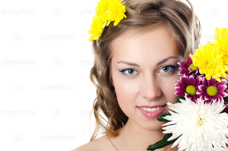 Девушка с хризантемами