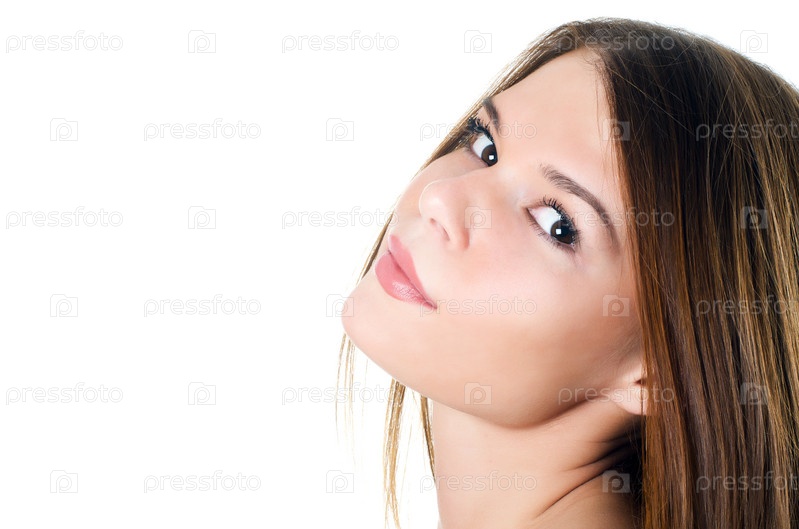 Портрет молодой красивой женщины на белом фоне
