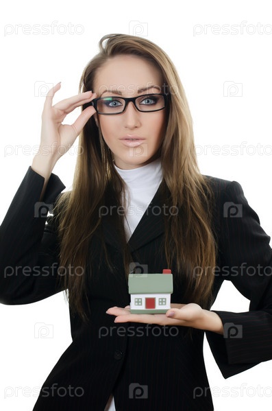 Деловая женщина с моделью дома