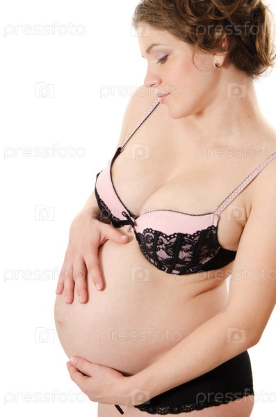 Беременная женщин на белом фоне