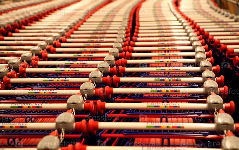 Множество магазинных тележек в качестве фона