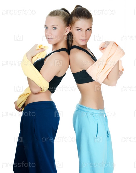 Две спортивные женщины, изолированы на белом фоне