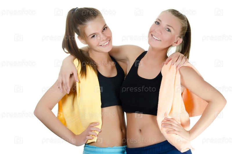 Две спортивные женщины, изолированы на белом фоне