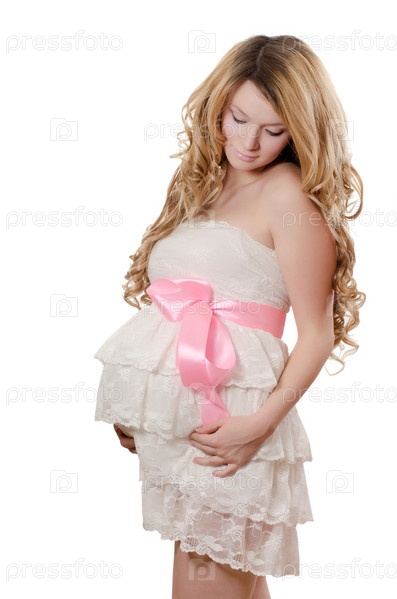 Беременная женщина на белом фоне
