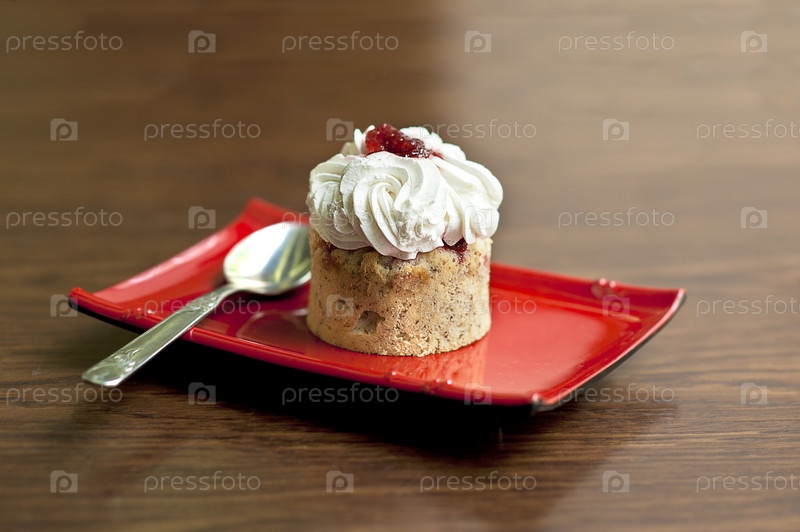 Пирожное с клубникой и взбитыми сливками