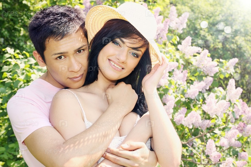 Молодая пара на фоне сирени