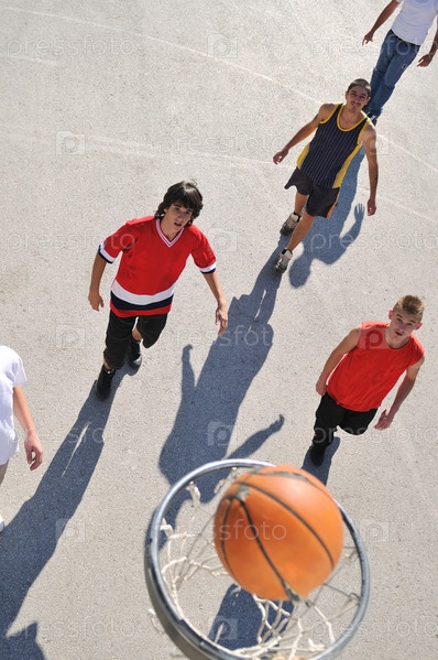 Подростки играют в баскетбол на открытом воздухе