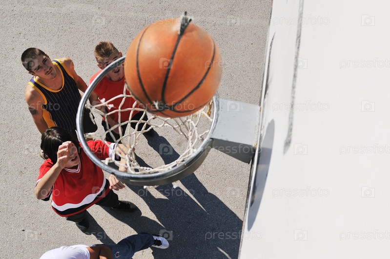 Подростки играют в баскетбол на открытом воздухе
