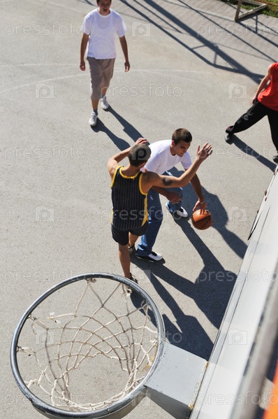 Подростки играют в баскетбол на открытом воздухе