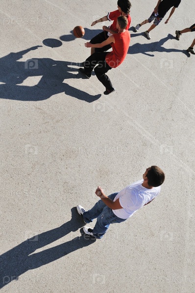 Подростки играют в баскетбол на открытом воздухе