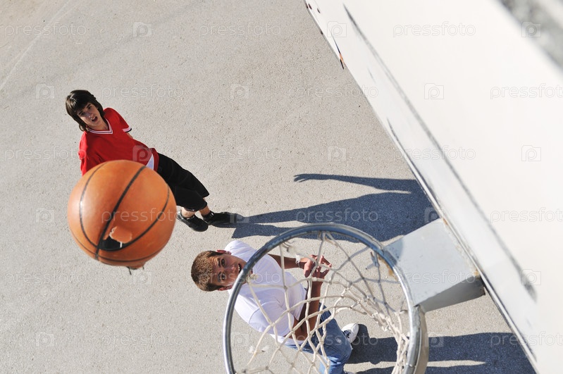 Подростки играют в баскетбол на открытом воздухе