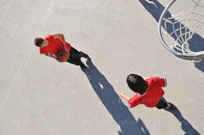 Подростки играют в баскетбол на открытом воздухе
